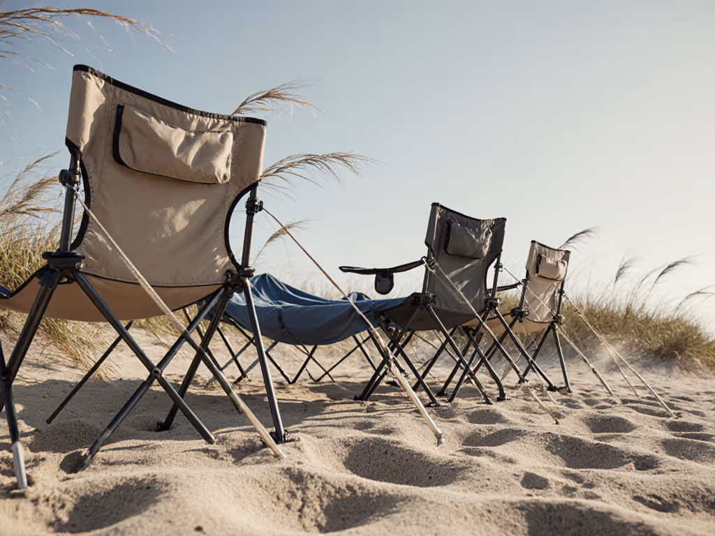 Weighted feet or sand plates: Some camping tables and chairs come with optional wider feet or sand anchors. Sand plates (flat discs that screw to leg bottoms) distribute weight over a larger area and increase friction. If your furniture doesn't include these, aftermarket options exist; prioritize them for beach or desert trips.